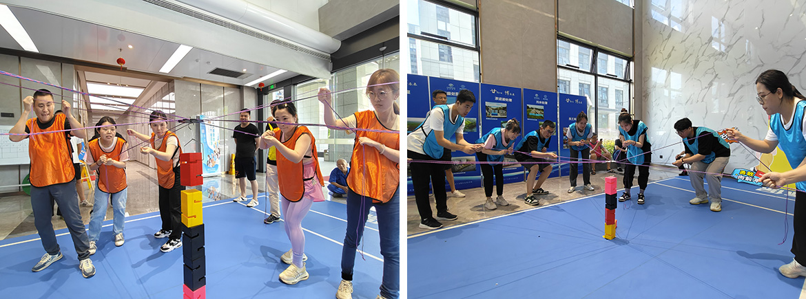 合力搭建延伸出的幾條繩子將大家的勁使在一處,心連在一起。齊心協(xié)力是必須,百折不撓是常態(tài)?,F(xiàn)場瞬息萬變,引發(fā)大家陣陣歡呼。
