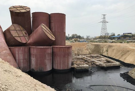 控制源頭。在事件現場設置了三道圍堰,確保儲罐區泄漏的硫酸控制在施工坑體內。同時,確保2個大廢酸儲罐的絕對安全。事件發生時,2個大儲罐已有輕微傾斜。為防止小儲罐泄漏的硫酸浸泡腐蝕大儲罐,采取填土方式穩固大儲罐,并實時監測大儲罐是否下沉、傾斜、泄漏。
